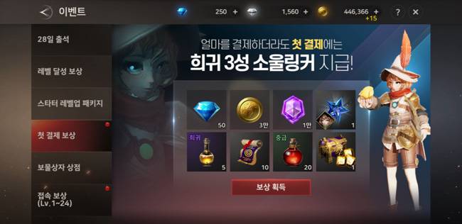 다이아랑 골드 조금이랑 희귀 3성 소울링커 줍니다
