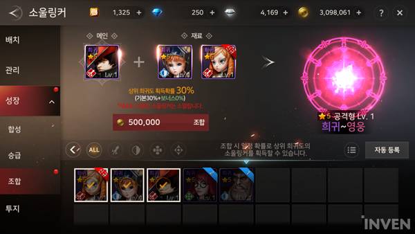 소울링커 성장 방법 - 별은 '합성/승급', 희귀도는 '조합'
